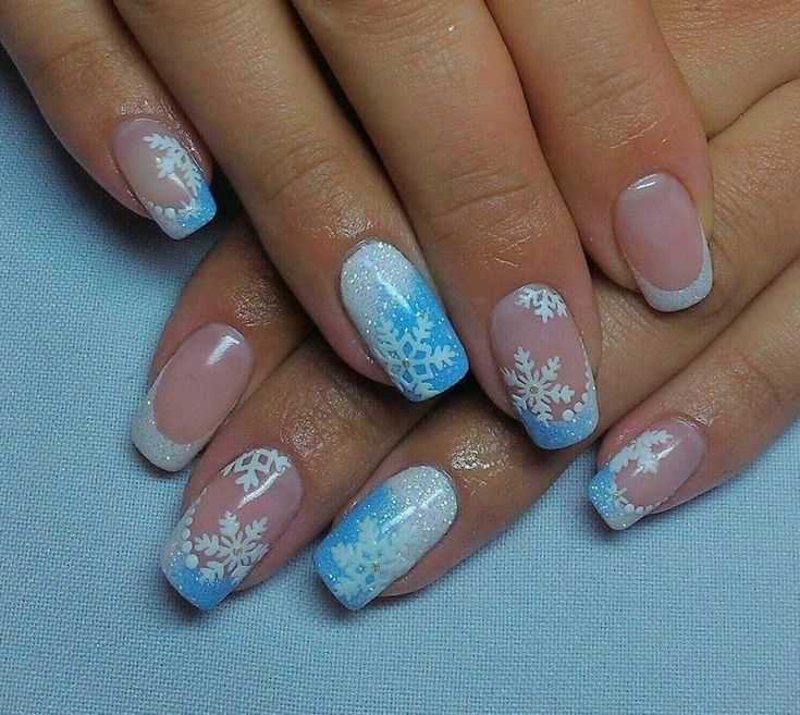 Синий нежный маникюр станет стильным и элегантным аксессуаром для любого праздничного настроения.