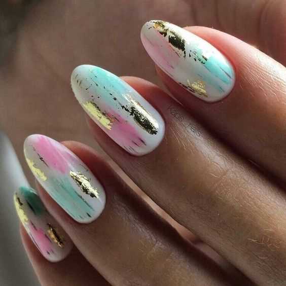 Эта комбинация цветов отлично подходит для нежного и романтичного образа. Разноцветные блестки добавят вашему маникюру шикарный эффект и сделают его более ярким.